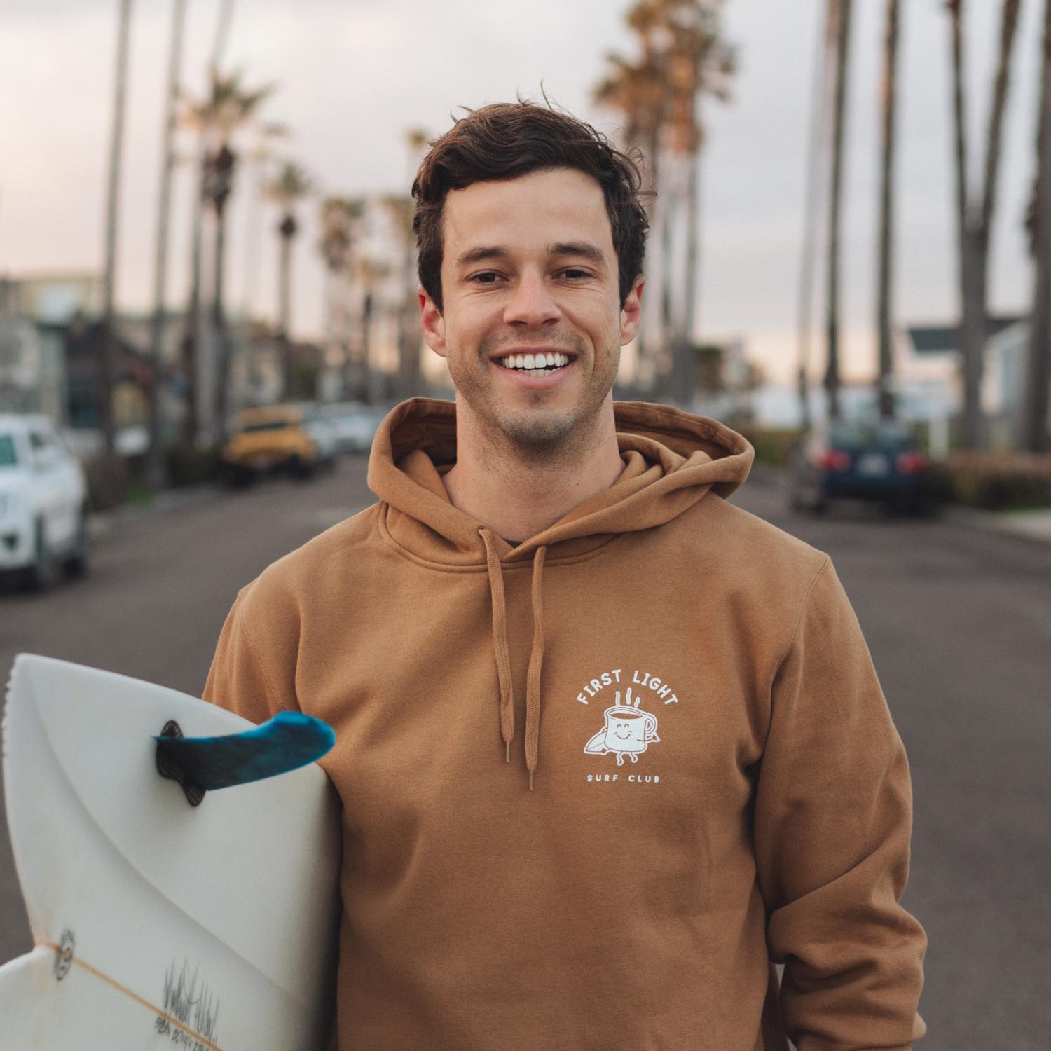 In 2019 I left the surf industry and stepped into a new job where lunch surfs and flexible schedules weren’t a thing. In order to still surf, I had to wake up early and go at first light to have enough time to make it to work by 8am. During this time I began to recognize people who would also be changing post-surf into their work attire. We'd make eye contact and give nods of camaraderie. Though some people thought I was crazy for waking up before the sun and getting in the ocean no matter the temperature, there's a group out there who gets it — a passionate and dedicated group. That's where First Light Surf Club was born. Work will always be a grind, but starting the day off in the water catching a few waves can make the day better. This is a brand that celebrates that. See you at first light.
