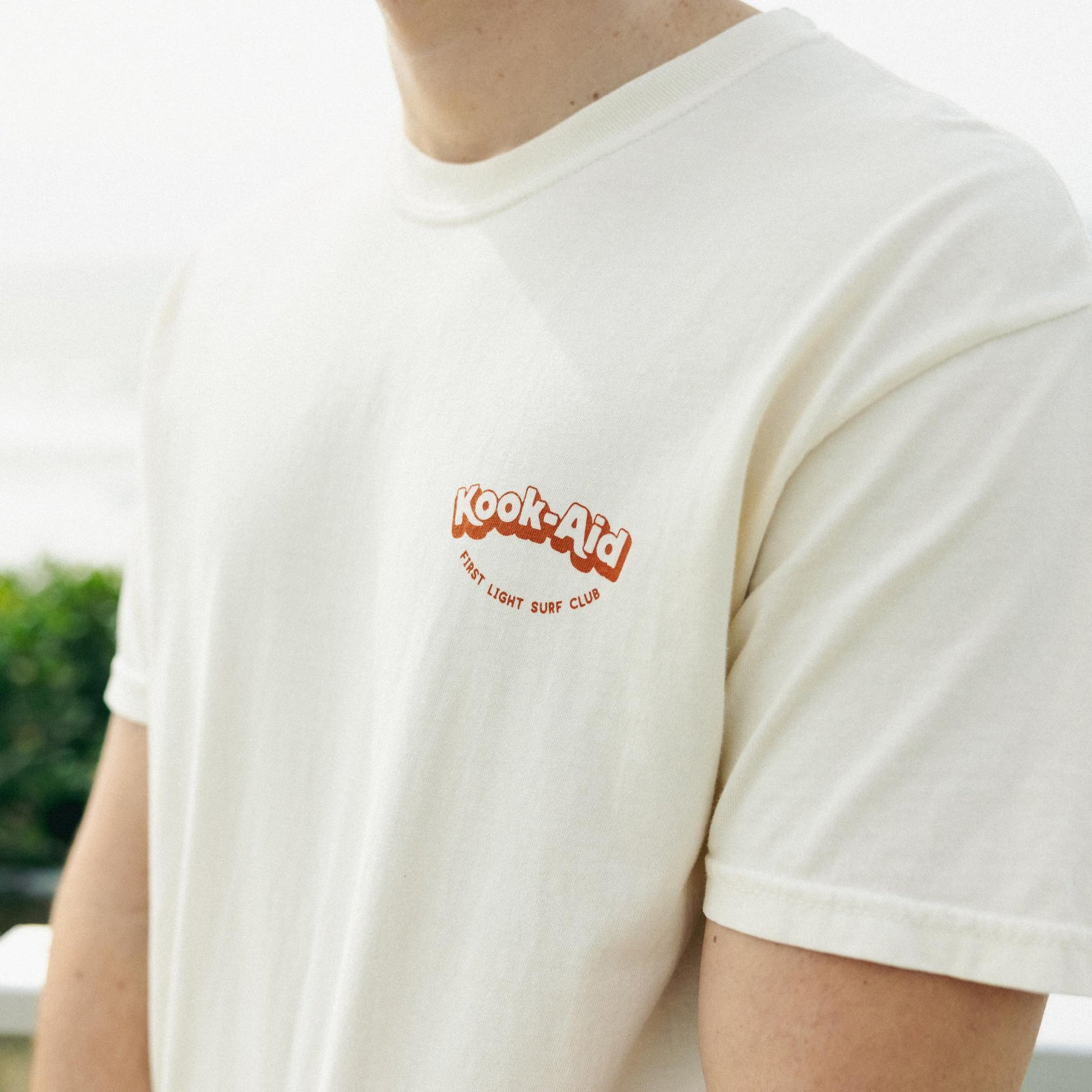 You can't rip every wave. At times there can be a little bit of kook in all of us. Learn to laugh it off and keep having fun. In the spirit of having fun and not taking things too seriously, we bring you the First Light Surf Club Kook-Aid Tee.