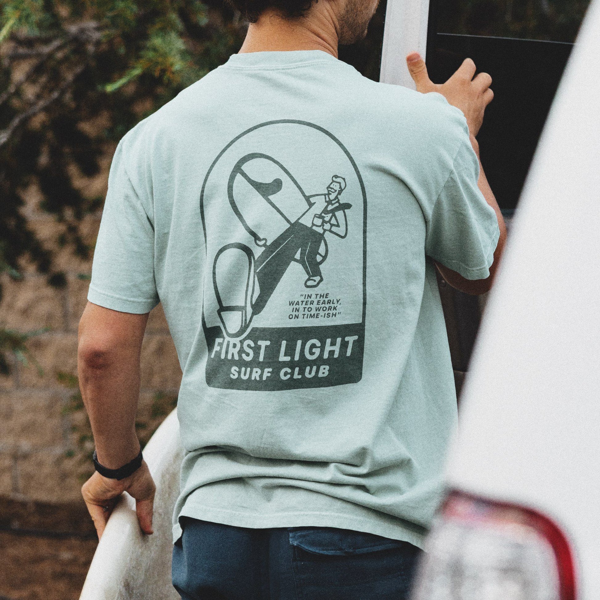 This tee is for anyone who is in the water early and in to work on time-ish.